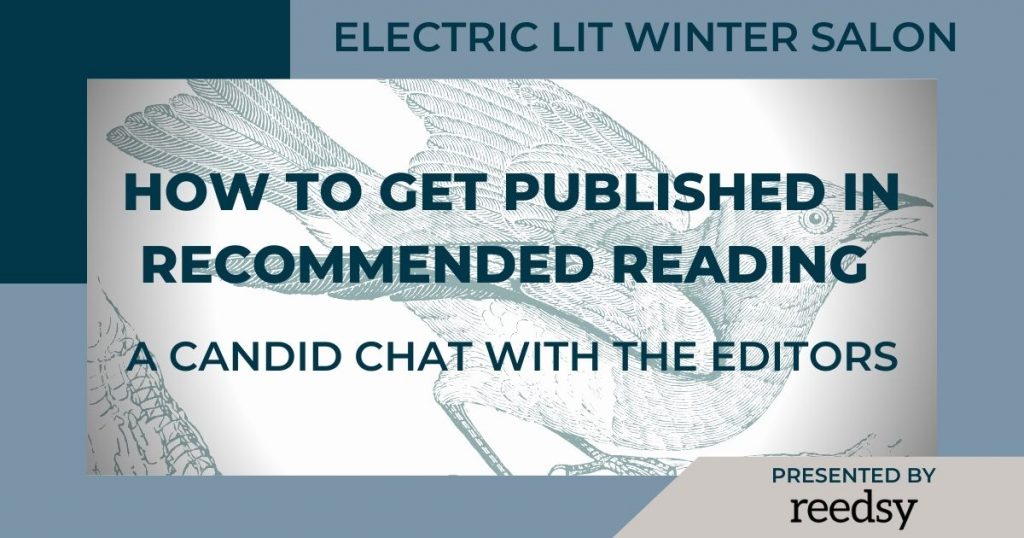 Electric Literature’s virtual salons demystify the craft of writing and look behind the curtain of the publishing process. All events in our Spring 2023 series are pay-what-you-want, and proceeds support Electric Literature’s mission to make literature more exciting, relevant, and inclusive.