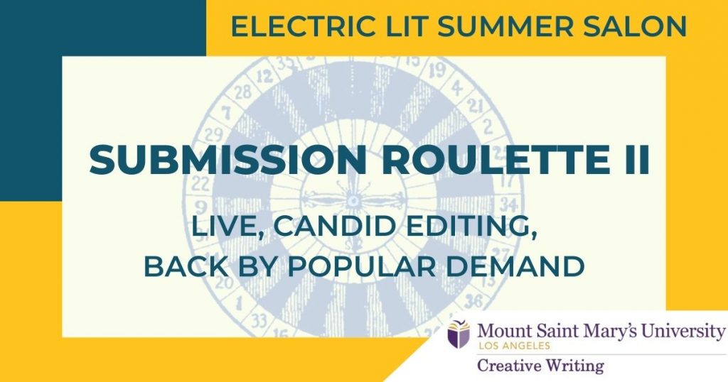 Tired of opaque form rejections that offer zero insights into why your submission “wasn’t a fit” or “doesn’t meet our publication’s needs”? Then join Submission Roulette III for, finally, some candid answers. Recommended Reading editors Halimah Marcus and Alyssa Songsiridej will review your anonymously submitted first pages, reading them for the first time live on screen, and share their immediate reactions as they go. What leads an editor to pass after just a few paragraphs, and what entices them to keep reading? And, since the chat has been so lively during past roulettes, we’ve added a fun new twist: we’ll all drink (or hydrate with a non-alcoholic beverage) every time we spot a POV violation.