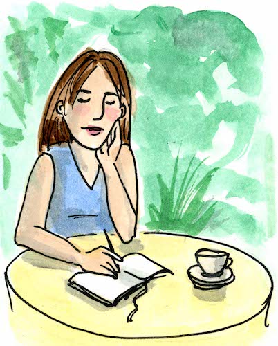 Sit at a scenic outdoor table at dusk, notebook open in front of you. If you contract the virus at least your mother will never have to read your memoir.